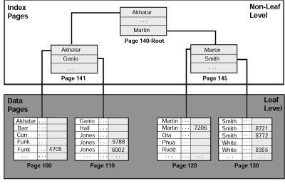 B-Tree는 트리 구조의 최상위에 하나의 "루트 노드"가 존재하고 그 하위에 자식 노드가 붙어 있는 형태이다. 트리 구조의 가장 하위에 있는 노드를 "리프 노드"라 하고, 트리 구조에서 루트 노드도 아니고 리프 노드도 아닌 중간 노드를 "브랜치 노드"라고 한다.