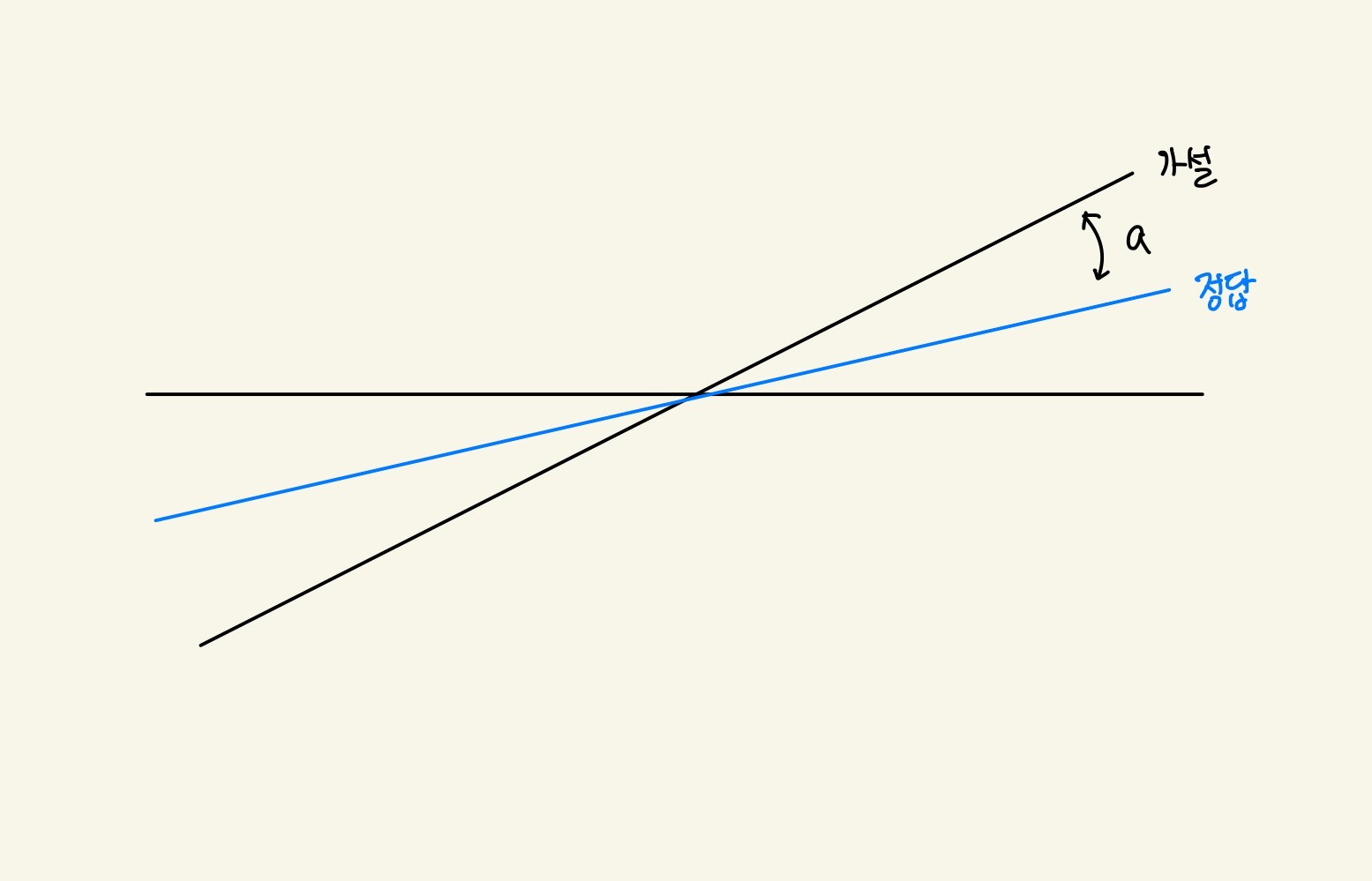 1차 함수의 형태로 가설을 만들어 정닶값에 최대한 정확하게 접근 할 수 있도록 하는 문제 해결방법