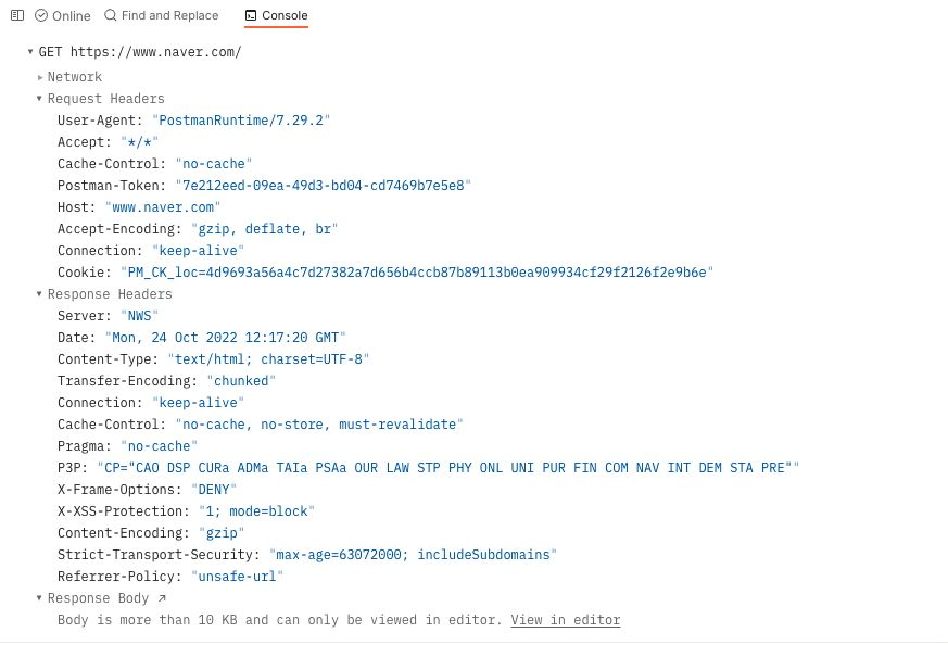 • (b) Response : 네트워크 http의 버전 + http 상태 코드 번호 + protocol header(info)/body(html)